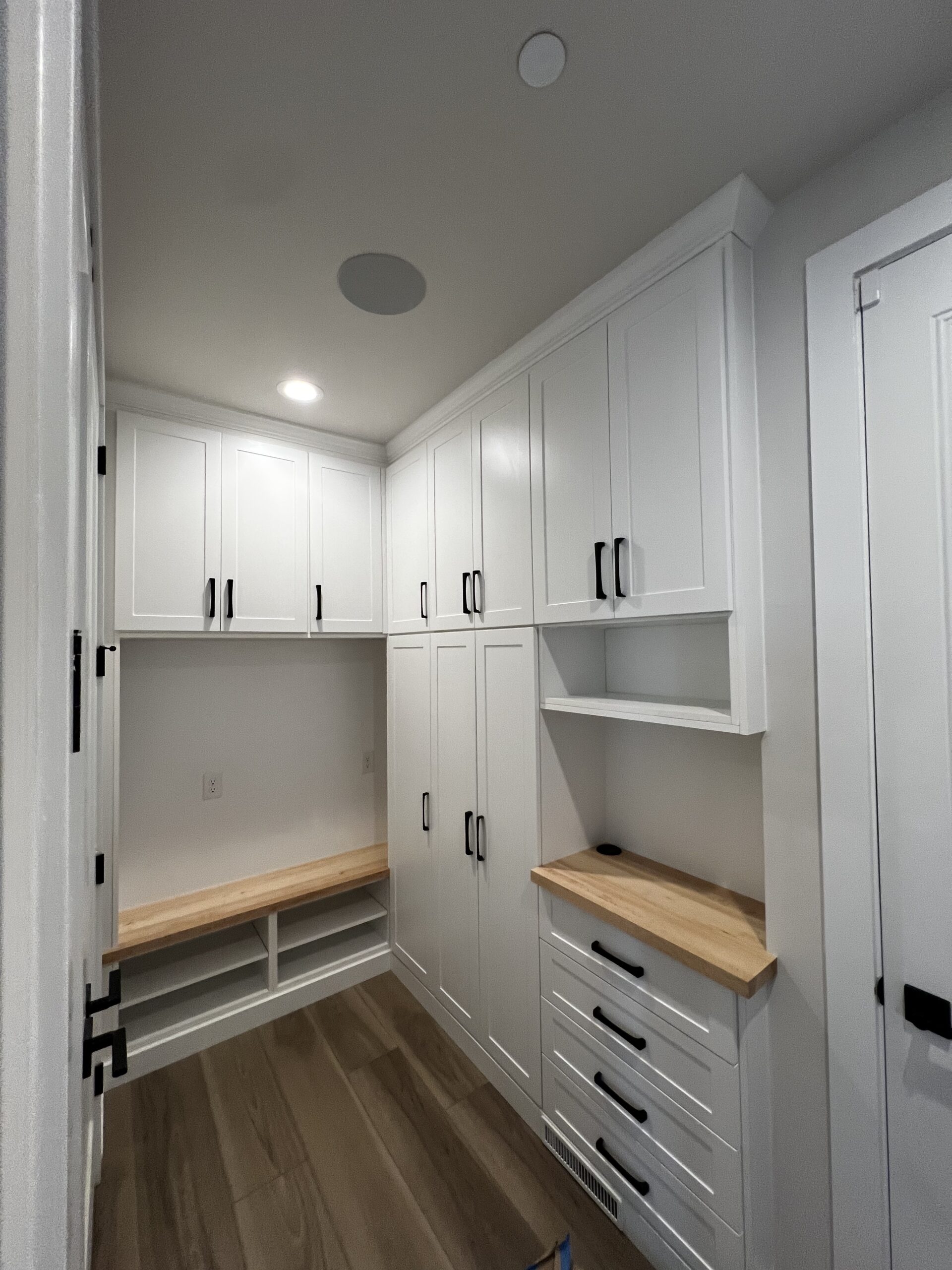 Recognizing that every client has unique requirements, our designers explore a range of tailored mudroom solutions with you. This ensures your space is maximized, reflects your personal style, and enhances practicality.