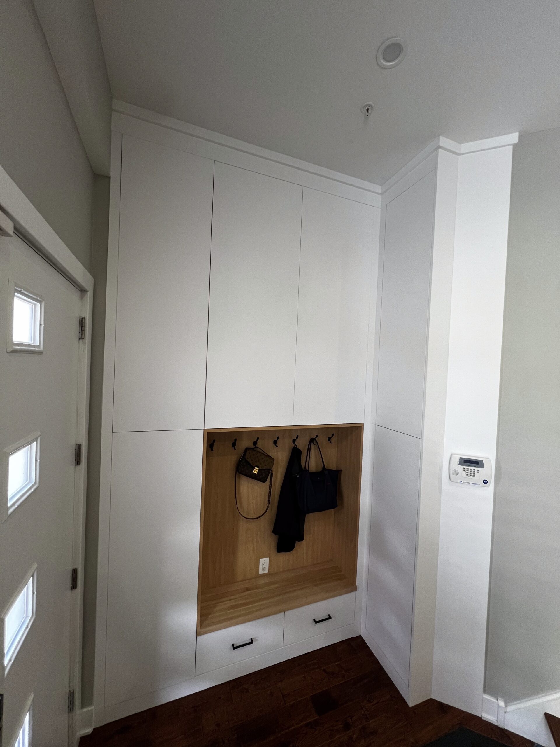 Our process begins with a free consultation where we discuss your needs and preferences. Following this, our designers create a tailored plan. Once approved, our craftsmen design, build, and install your beautiful custom mudroom.